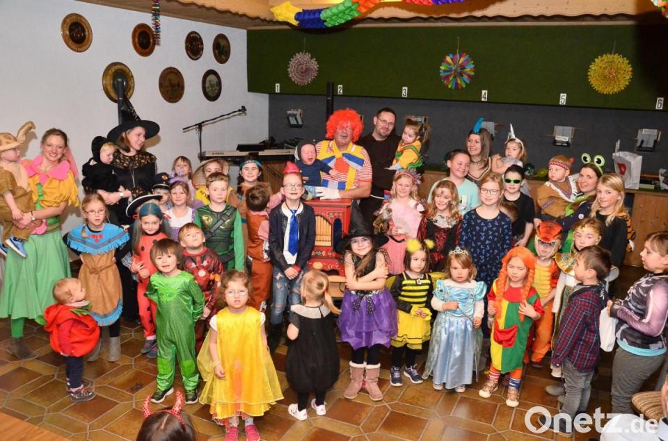 Vom wenige Monate alten Baby bis zu Oma und Opa waren alle Gäste kostümiert und geschminkt – eine wahre Augenweide. Wild hüpften, liefen und purzelten die Kinder im Schützenhaus durcheinander. Jedermann musste aufpassten, dass er nicht über einen kleinen Steppke zwischen Konfettiregen, Luftschlangen und Luftballons stolperte. Rührend kümmerten sich Nicole Voit und Kerstin Krämer-Höreth um die Unterhaltung der jungen Gäste. Alleinunterhalter „Bernie“ steuerte den passenden Musikmix dazu und half, die Stimmung auf hohem Niveau zu halten. Dennoch glückte es Karl Herrmann aus Burkhardsrieth, die Szenerie noch zu toppen. In einem bunten Clownskostüm gab er einen Debütauftritt als Leierkastenspieler auf der Tanzbühne.