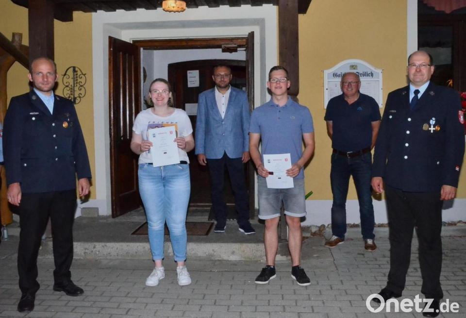 Wie sehr die Harmonie wieder passte, zeigte sich im Anschluss: Die anstehenden Beförderungen für die aktive Wehr übertrug die Ortswehr noch einmal gänzlich dem Ex-Kommandanten Neuber. Befördert zum Feuerwehrmann wurden Florian Zetzl und zur Feuerwehrfrau Sophia Neuber. Für 10 Jahre aktive Dienstzeit wurden Johannes Bauriedl und für 20 Jahre aktive Dienstzeit Johannes Kaiser mit Urkunden bedacht.