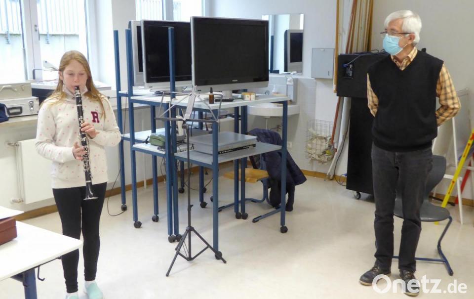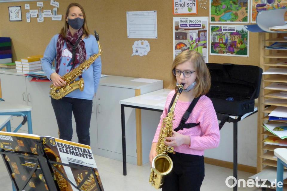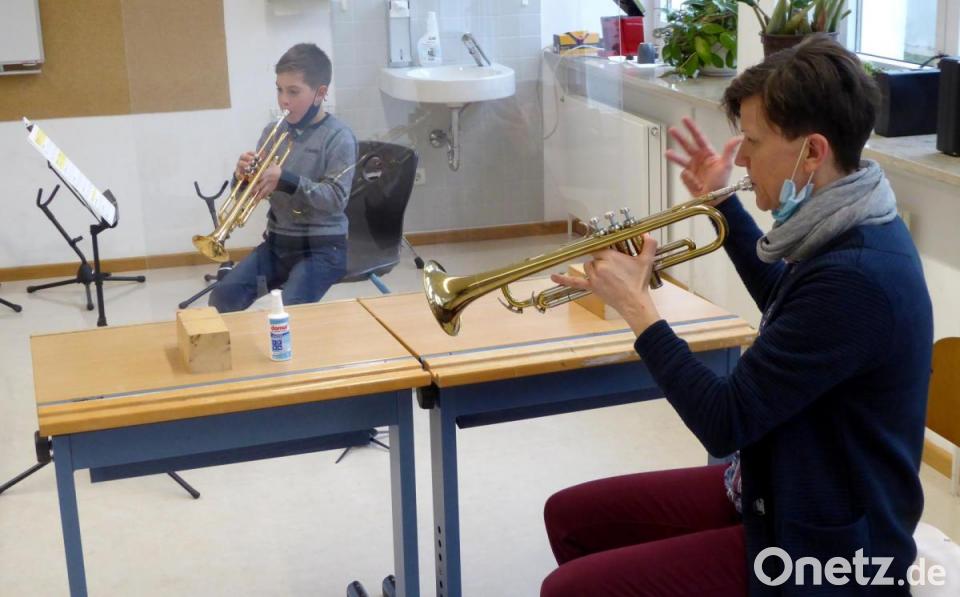 Musikschüler und Lehrer sind durch eine Glasscheibe oder eine Plastikfolie voneinander getrennt. Wenn näherer Kontakt notwendig ist, um etwa einen bestimmten Griff zu zeigen, werden vorher die Hände desinfiziert. Doch die Begeisterung ist den Musikschülern nicht genommen. Lucy, die Saxofon spielt, gefällt "einfach alles" an der Bläserklasse. Emre, dessen Schwester in der 7. Jahrgangsstufe der Bläserklasse ist, eifert dieser nach und übt selbst in den Ferien ganz fleißig mit seiner Trompete.