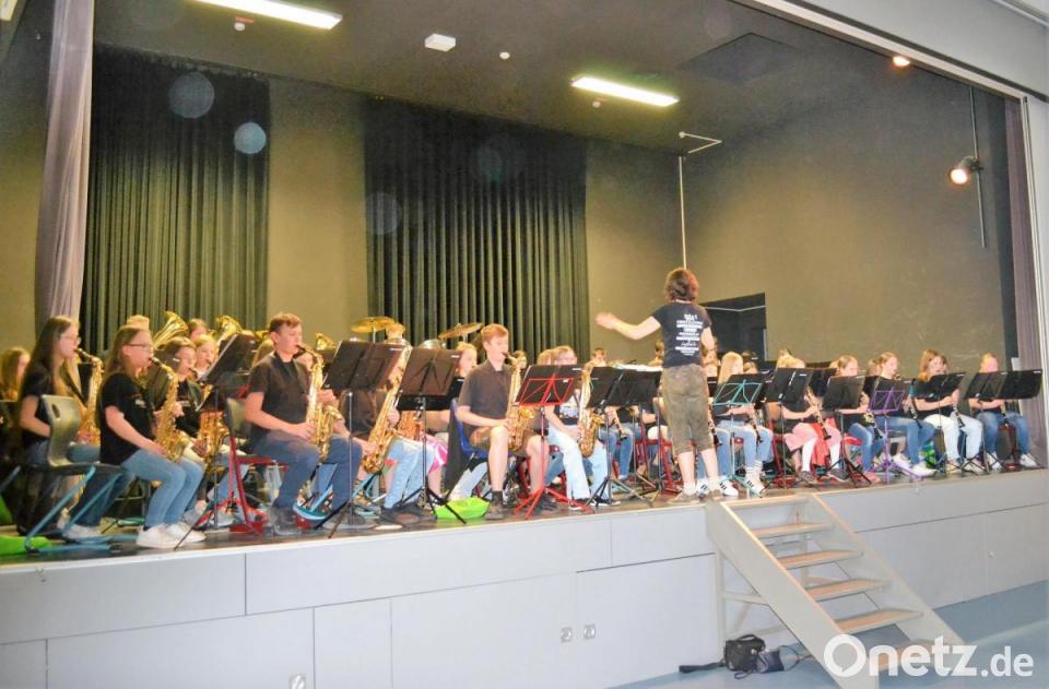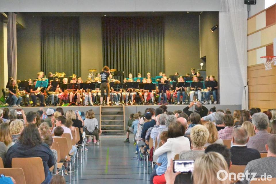 Erstmals saßen 60 Bläser auf der Bühne und stellten ihre Lernerfolge unter Beweis. Dabei führten die Schüler selbst durchs Programm und erzählten dem begeisterten Publikum, was ihnen an den Liedern und am Musizieren so gefällt. Nach der ersten Zugabe "Skyfall" wünschte sich Rektorin Piehler das Lied "Pipi Langstrumpf", das in den fünf Jahren Bläserklassen zur Pirker Tradition geworden war. Die Bläser der 8. und 9. Klasse entließen die Besucher mit ihrer Lieblingspolka "Jugendträume". Pünktlich zum Ende des Festes stellte sich dann der vorhergesagte Regen ein.