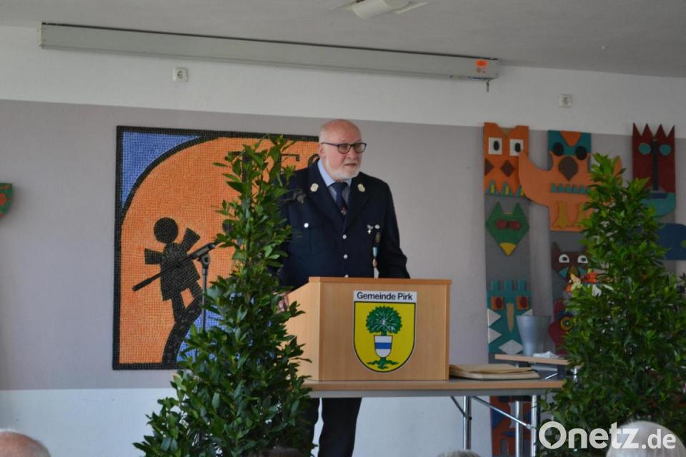 Georg Forster nahm die Auszeichnung für seine Verdienste auf sozialem und kulturellen Gebiet entgegen. Auch er lenkte von 1990 bis 2014 die Geschicke des Ortes als Mitglied des Gemeinderats. Davon war er 12 Jahre lang der Sprecher der CSU-Fraktion. In dieser Zeit übernahm der die Kassenführung der FFW Pirk, bei der er seit 1972 Mitglied ist. Bis zur Altersgrenze von 63 Jahren leistete er aktiven Dienst auch als Atemschutzträger. Ehrenvorsitzender Georg Stahl würdigte die Verdienste des Geehrten in einer eigenen kurzen Laudatio und stellte dabei deutlich heraus, mit wie viel Engagement und persönlichem Einsatz Forster für FFW tätig war.