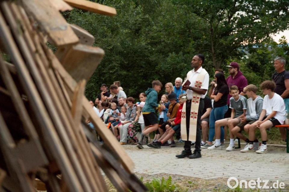 Alte Traditionen wieder aufleben lassen, das hat sich der Kirwaverein auf die Fahne geschrieben. Und so wurde nach zwei Jahren Coronapause das Sonnwendfest an der Brettlhütte wieder gefeiert. Bei herrlichem Wetter strömten Jung und Alt zum Feuerplatz und ließen sich mit Grillspezialitäten und kühlen Getränken verwöhnen. Die Truppe um Vorsitzende Steffi Reil hatten sich die Grillkäs-Semmel als besondere Spezialität einfallen lassen. Hoch aufgetürmt hatten die Helfer die Holzspenden, die aus der Bevölkerung angeliefert worden sind. Um das Einnisten von Tieren zu verhindern, wurden diese erst kurz vor dem Fest angenommen. Nachdem die Feuerwehr die benachbarten Bäume gut gewässert hatte, erteilte Pfarrer Jaison Thomas den Segen, und der Kirwaverein entzündete bei Einbruch der Dämmerung das Feuer. Für zünftige Unterhaltung sorgten nicht nur die vier Mann mit dem passendem Namen "Hulzstoussboum" aus Waldthurn, sondern auch die fahrbare Schnapsbar, die bis spät in die Nacht unterwegs war.