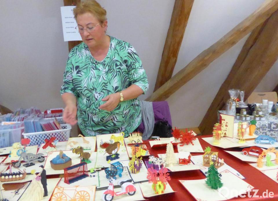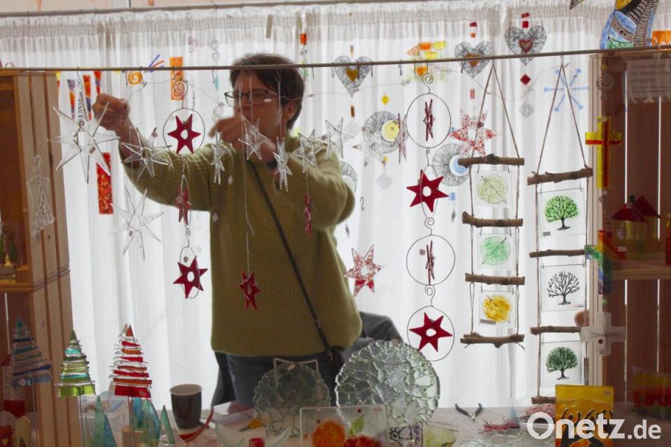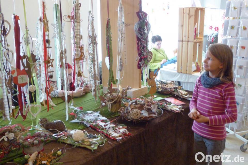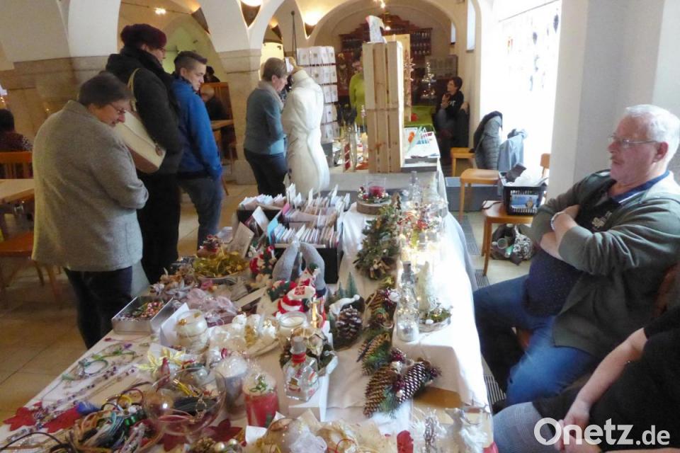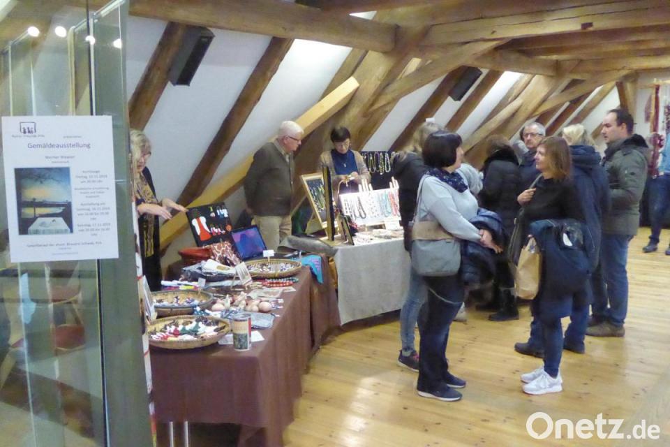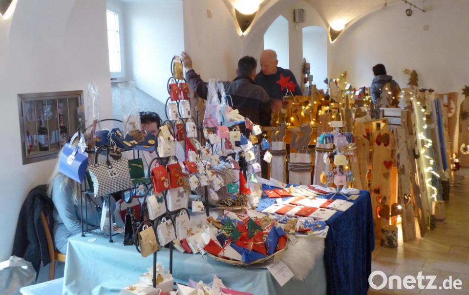 Im Galeriesaal hatten die Veranstalter für die Gemeinde- und Pfarrbücherei einen großen Bücherflohmarkt errichtet, bei dem so mancher Besucher eine Rarität für einen Euro erstand. Handgeschöpfte Weihnachtskarten und in Kenia gehäkelte Engelchen vertrieb der Verein Asante, ein seit 15 Jahren bestehendes privates Hilfswerk. Der Erlös kommt der Förderung von Schulkindern zugute. Eine Kräuterfachfrau hatte eingelegte Steinpilze, Wildkräuter- und Pilzpulver, Salze, Kräutersirup, Tees und Hildegard-von-Bingen-Produkte im Angebot. Hinzu kamen handgefertigte Edelsteinketten, aufklappbare Glückwunschkarten, Naturseifen, Holzvasen und -handtaschen, Seiden- und Filzarbeiten sowie Mützen, Schals, Hüte, Tunikas und Stulpen, Fruchtliköre und -sirup und weitere Dekoartikel für die Weihnachtszeit.