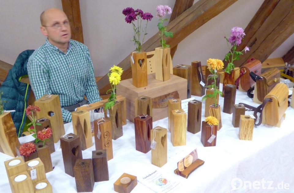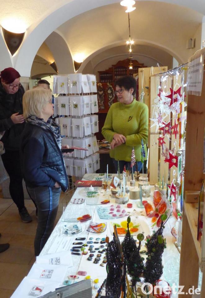 Bis zum späten Nachmittag begutachteten die Besucher feinstes Kunsthandwerk und regionale Produkte und holten sich Anregungen für die Advents- und Weihnachtsdekoration. Im Gewölbesaal standen Dekobretter und Holzdekos sowie neuartige Betondekos für den Innen- und Außenbereich. Nebenan gab es Geschenkverpackungen aus Papier für jeden Anlass. Honigprodukte wie Blüten- und Waldhonig, Honigwein, Bienenwachsfiguren, Seifen, Duschgels, Cremes und Honigbonbons standen zum Verkauf. Überwiegend aus eigener Produktion stammten die Lammfelle, das Lammfleisch und die Salami, die neben Alpaka-Socken und Schafmilchseifen vertrieben wurden. Außerdem gab es Modeschmuck und Grußkarten, Glaskunst, Gestecke, dekorative Eisenstäbe sowie Tür-, Fenster- und Wanddekos. An einem Stand konnten Interessierte das Mundartbuch von Ferdinand Schönberger und die beiden kunsthistorischen Bücher von Karl Prell erwerben.