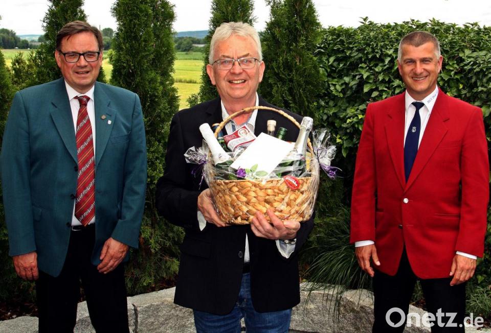 Vor 12 Jahren unterrichtete Joseph Frischholz Religionslehre in der Schule in Pirk. Zwei Lehrkräfte sangen auch im damaligen Chor des Männergesangsvereins, der ohne Chorleiter war. So kam das heutige Geburtstagskind, das jetzt seinen 70. Geburtstags feierte, zum Männergesangsverein Pirk. Vorsitzender Dietmar Schaller, zugleich Pirks Bürgermeister, überbrachte zusammen mit Hans-Georg Birkmüller vom befreundeten Lyra-Gesangsverein Luhe ein Geschenk.