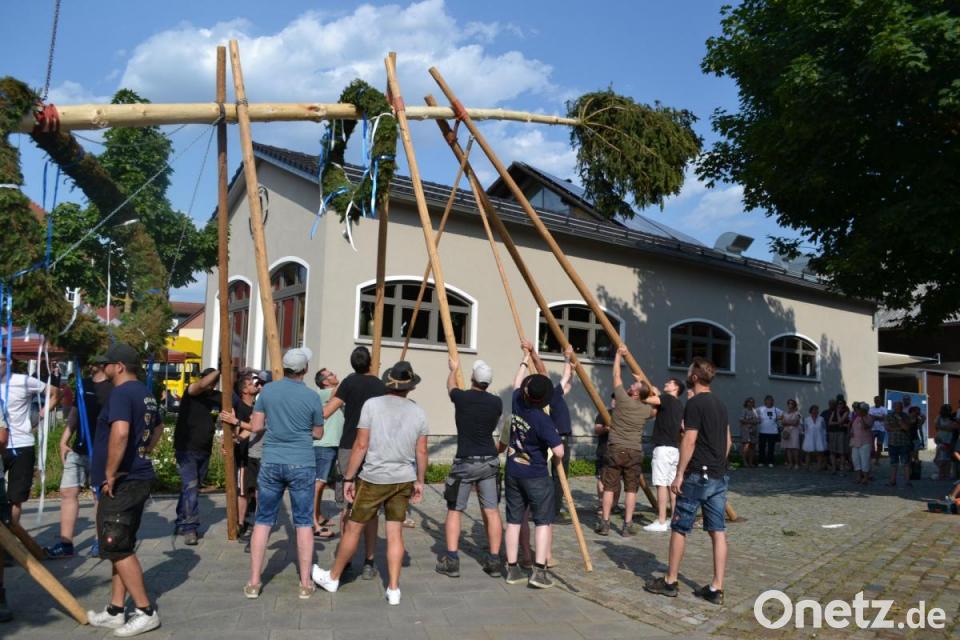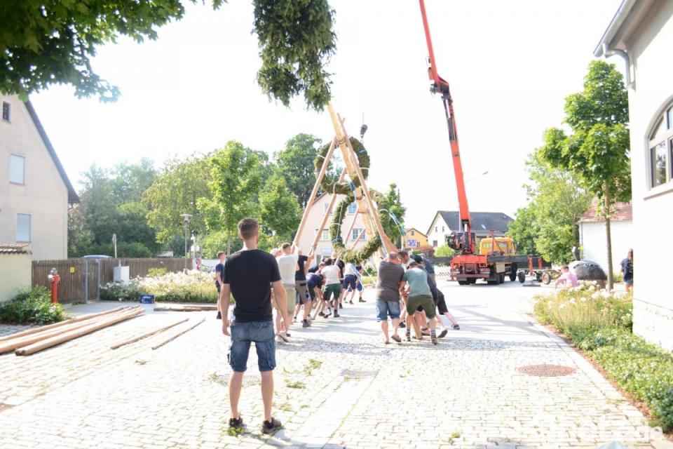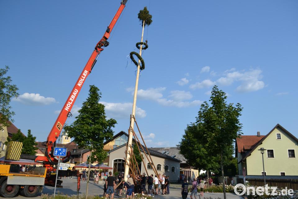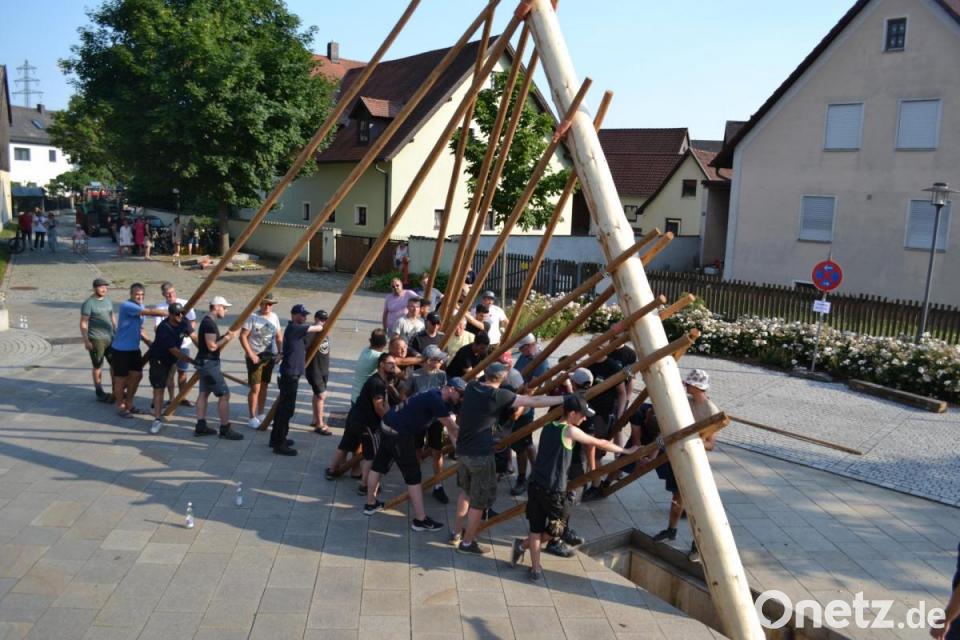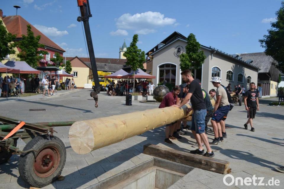 Unter der Regie von Jakob Schwab aus Luhe begann das Aufstellen zunächst mit dem Abladen des Baumes.