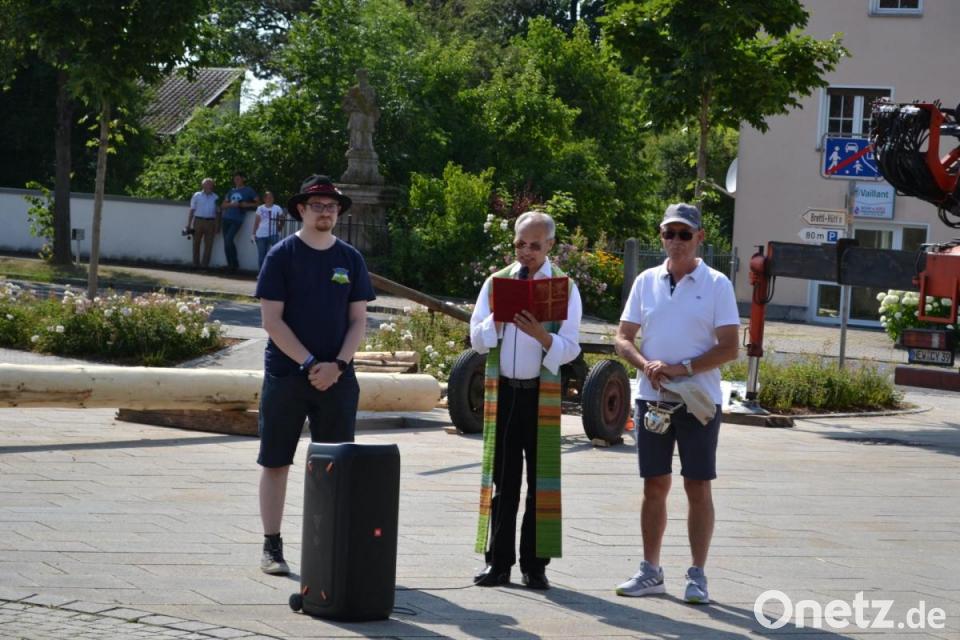 Pfarrer Varghese Puthenchira aus Weiherhammer segnete den Kirwabaum stellvertretend für den Pirker Pfarrer Jaison Thomas.