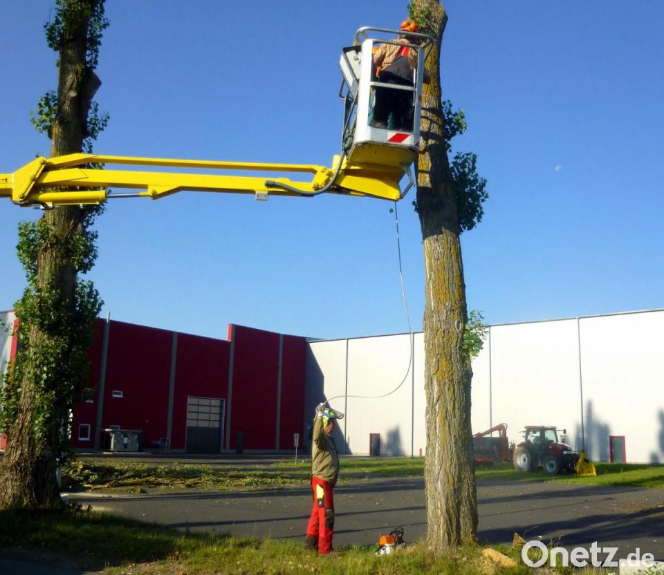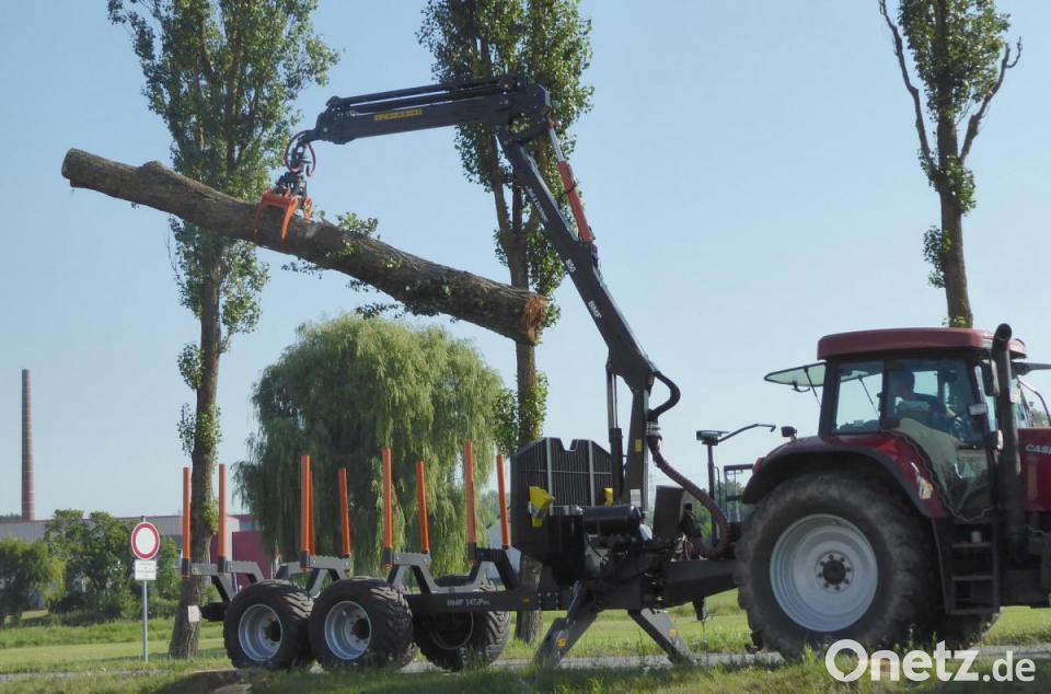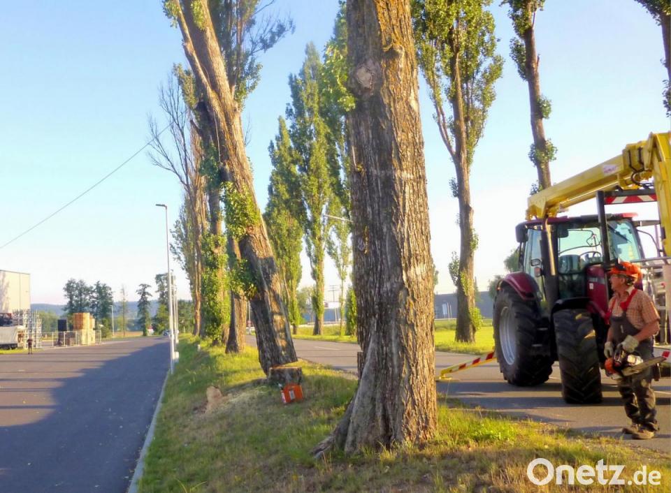 Wegen der heißen Temperaturen begann ein achtköpfiges Team des Facility Managements der Firma Constantia und der Firma Landschaftspflege Hölzl frühmorgens mit den vom Gemeinderat beschlossenen Fällarbeiten der 17 Pappeln an der Westseite der „Richard-Hülsmann-Allee“. Mit einer Seilwinde am Traktor wurde jeder Baum festgehalten und mit Motorsägen abgetrennt. Schon bis etwa 8 Uhr waren diese Arbeiten beendet. Danach wurden die Baumstümpfe und die Wurzelstöcke mit einer Spezialmaschine ausgegraben und die Stämme und das Beiwerk im Bereich der Kläranlage zwischengelagert, wo sie in etwa zwei Wochen zu Hackschnitzeln zerkleinert werden.