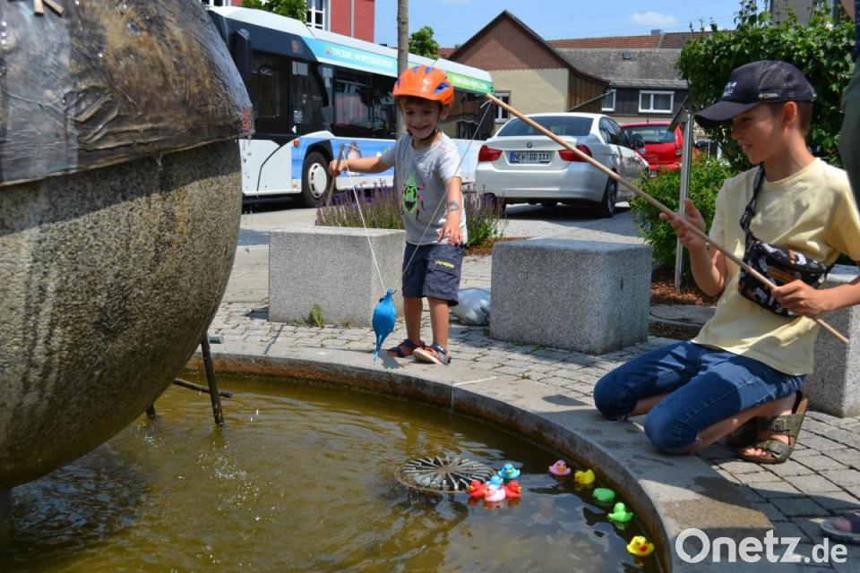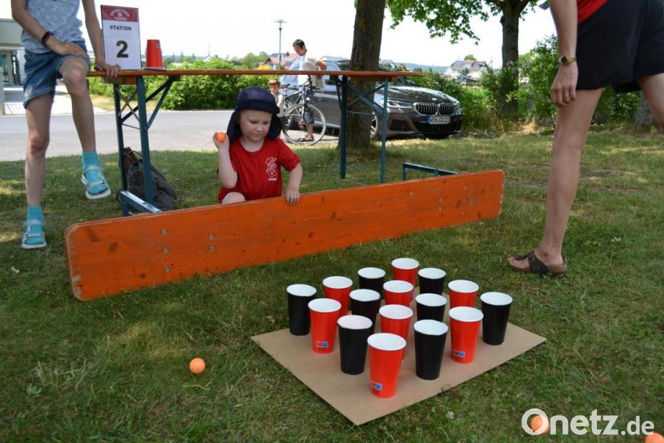 Bei der Feuerwehr am Feuerwehrhaus galt es, einen Liter Wasser mit der Handspritze und gutem Augenmaß abzufüllen. Der Brettl-Verein an der Hütte wartete mit einer Minigolfbahn und einer Schätzübung auf. Im Holunderweg durften die Kids mit einer Schleuder Enten ins Wasserbecken befördern, bevor es zu den Fußball-Übungen auf dem Allwetterplatz ging. Danach löschten die Teilnehmer unter den Beschattungen der Bierbänke im Pausenhof der Josef-Faltenbacher-Schule ihren Durst, denn die Sonne brannte auf die Rallye-Teilnehmer.