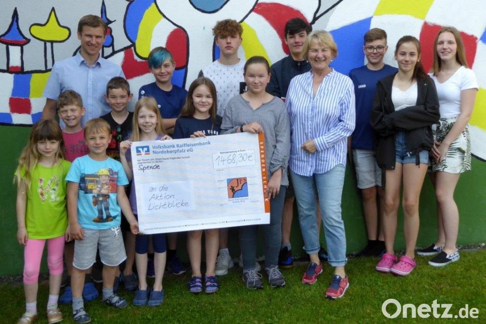 Zur Übergabe der höchst respektablen Spende in Höhe von 1486,30 Euro durch den stellvertretenden Schulleiter Matthias Werner begrüßte dieser die ehemalige Rektorin und Schirmherrin der Hilfsaktion „Lichtblicke“ von „Oberpfalz Medien“, Elisabeth Wittmann. Sie freute sich besonders, dass Kinder durch ihr Engagement Notleidende aus der Region unterstützen. Die anonymen Spenden kämen seit Bestehen der Aktion vor 25 Jahren sowohl hilfsbedürftigen Familien für Kleidung und Lebensmittel sowie älteren Leuten mit Gutscheinen als auch Kindern und Jugendlichen zugute, etwa zur finanziellen Unterstützung bei Klassenfahrten. Daher galt ihr Dank allen Klassen und den Lehrern für ihre aktive Mitarbeit und den Eltern und Gästen für ihre Spenden.