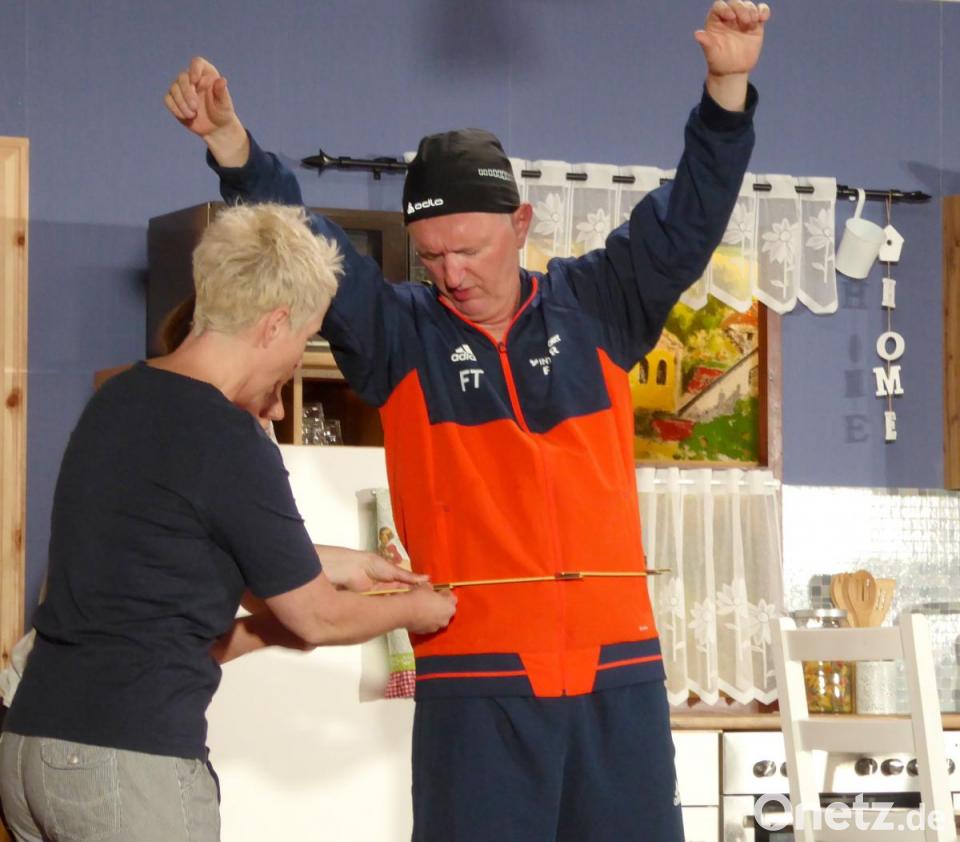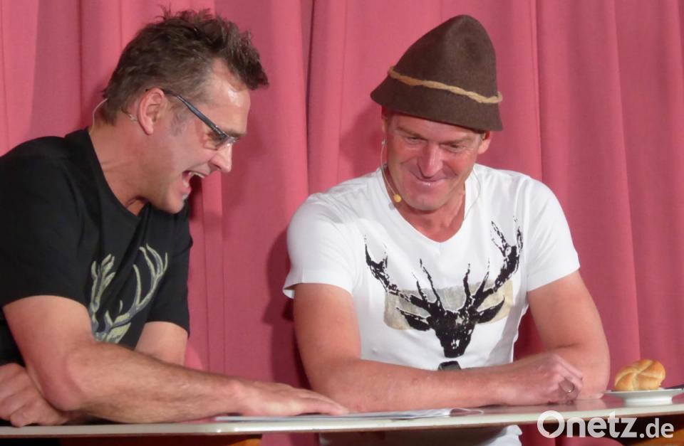 In einer Paraderolle als lautstark polternder Franz-Josef, der sich zunächst vehement und aus guten Gründen gegen das Klassentreffen wehrt, dann als Schlitzohr seiner Frau den Schwerkranken vortäuscht, glänzte einmal mehr Thomas Fritsch. Da singt er mit hochgerissenen Armen den umgetexteten Hit der „Spider Murphy Gang“ vom „Skandal (um die Christina)“, legt mit seinen männlichen Kollegen einen wilden Strip hin, um Willibalds Frau zu imponieren, und übt an einem Stuhl ein „Aufklärungsgespräch“ mit seinem Sohn.