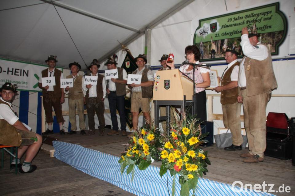 Schützenmeisterin Sonja Bauer begrüßte einige Ehrengäste und erinnerte in einem Rückblick an die Vereinsgründung, die aus einer Bierlaune heraus durch die Initiative von sieben Mitgliedern zustande kam und für die "Gründungsvater" Karl Fleißer alles Nötige in die Wege geleitet hatte. Nachdem die erforderlichen Lehrgänge absolviert und Böller beschafft waren, konnte bereits 1998 zum ersten Mal geschossen werden. Mittlerweile hat der Verein 26 aktive Böllerschützen, die mit zu den Aushängeschildern des Vereins geworden sind. Die Gründungsmitglieder Oswald Schaller, Josef Bauer, Adolf Schaller, Norbert Herzog, Alois Nesner und Karl Fleißer erhielten Dank- und Erinnerungsurkunden. Als Gratulanten waren Bürgermeister Heinz Weigl sowie Bezirksoberschützenmeister Dieter Hoppe mit einer starken Delegation und weitere Ehrengäste gekommen. Sie dankten in ihren Grußworten für den Erhalt von Tradition und Brauchtum.