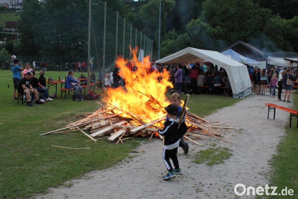 Bei der DJK Utzenhofen gab es einen Seilzug-Wettbewerb, bevor das Johannisfeuer 2019 entzündet wurde.
