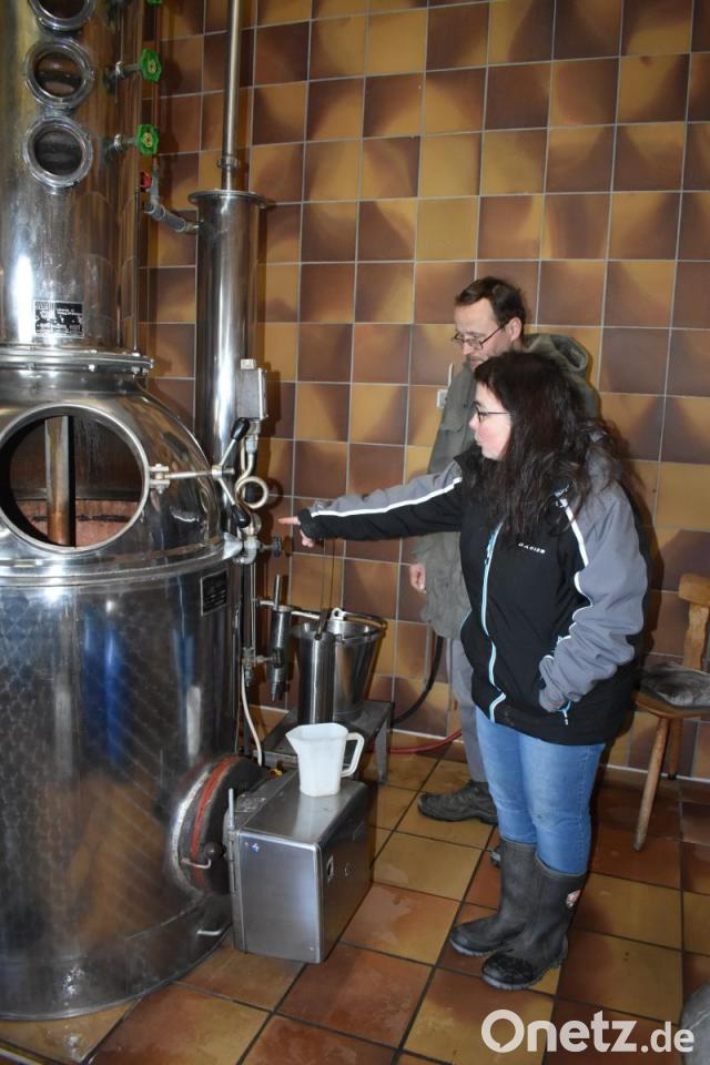 Es sind die letzten Reste des vergangenen Sommers, die Birgit und Stefan Schlötzer in ihrer Schnapsbrennerei aktuell noch verarbeiten. Sie verwandeln auf ihrem landwirtschaftlichen Betrieb in Plärn bei Erbendorf regionales Obst zu klaren Bränden. "Wir bekamen die Destille 1993 für 20 000 Mark über eine Bekannte aus Krummennaab. Damals hatten wir noch keine Ahnung wie das geht. Heute ist es unser zweites Standbein neben unserem Milchkuhbetrieb", erklärt Stefan Schlötzer. Über Fachzeitschriften, Bücher und Kurse lernte das Ehepaar schnell das nötige Know-How. "Für weitere 2000 Mark holten wir uns ein Standard-Brennrecht für 300 Liter reinen Alkohol", erzählt Birgit Schlötzer. Doch das Ehepaar brennt nicht nur Schnaps für den eigenen Verkauf, sondern bedient auch über 100 Stoffbesitzer aus der Region. "Unsere Stoffbesitzer sind Personen, die das Obst aus ihrem eigenen Garten zu Maische verarbeiten und diese dann durch die Brennerei zu Schnaps weiter verarbeiten möchten." Durch die Einstellung des Brandweinmonopols 2017 könne jeder, der einen Obstbaum hat, selber einmaischen. Die Stoffbesitzer kommen aus den Landkreisen Tirschenreuth, Neustadt/WN, Weiden und sogar aus Amberg-Sulzbach nach Plärn. "Wir sind ein Knotenpunkt. Die nächste Anlaufstelle befindet sich erst in der Fränkischen Schweiz", weiß Birgit Schlötzer.