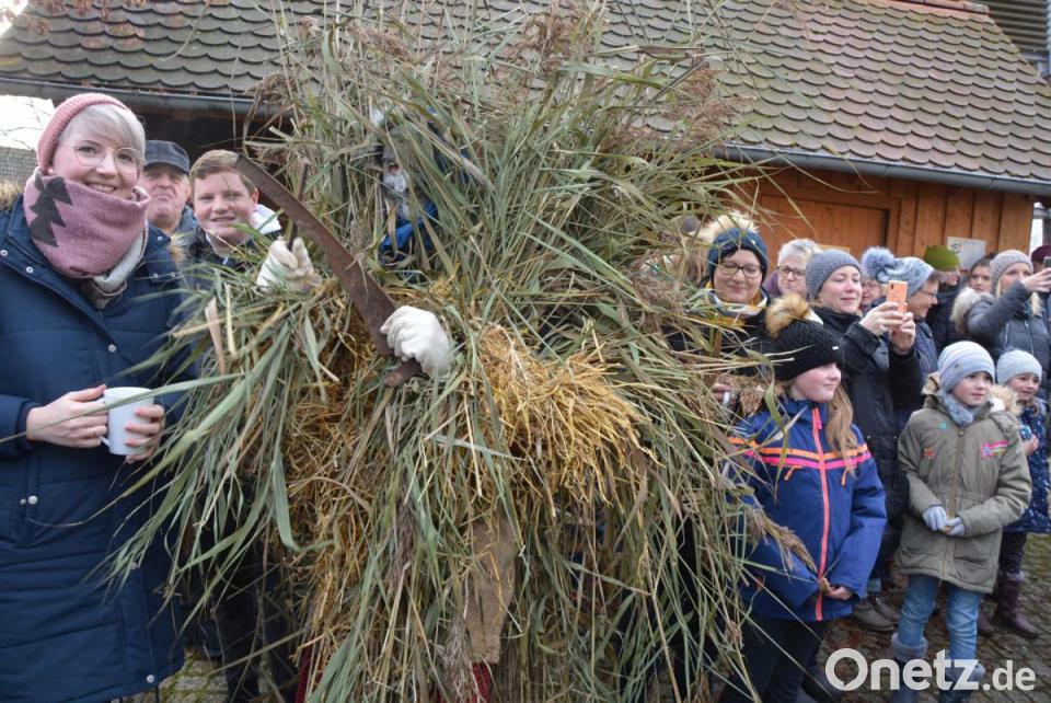 Klein, aber fein ist die Traditionsveranstaltung mit den Spechten in Pleußen am Heiligabend. Kurz nach 12.30 Uhr stürmten drei von den wilden Sagengestalten den Dorfplatz, um bei den dort anwesenden Besuchern Furcht und Schrecken zu verbreiten. Verkleidet mit Masken, Kostümen aus Schilf und anderen natürlichen Gewächsen jagten die Spechten jedem hinterher, der sich bewegte. „Die Jugend hat diese Jahrhunderte alte Tradition neu aufleben lassen“, freute sich die ausrichtende Dorfgemeinschaft, die für das leibliche Wohl der Besucher mit Glühwein und Lebkuchen gesorgt hatte. Natürlich hatten die Spechten für die kleinen Besucher auch etwas zum Naschen mitgebracht.