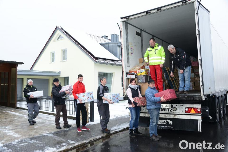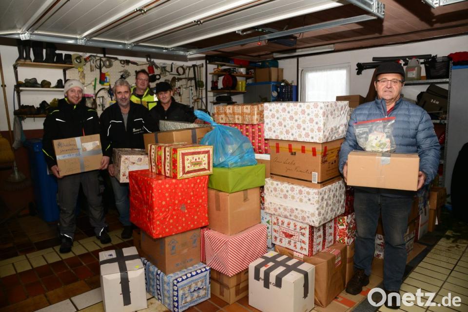 Endlich wollte Bruno Friedl in seiner Garage am Herrnpoint 100 Pakete stapeln. Der Wunsch ging in Erfüllung: 118 Pakete haben er und seine Frau Monika in der Garage sauber auf- und aneinandergereiht. 100 kamen von Privatpersonen, 18 Pakete aus dem Kindergarten. Friedl bekam für sein Vorhaben 860 Euro Spenden. Am Donnerstagvormittag wurden die Pakete abgeholt. Friedl, Andreas Scheibl, Willi Friedl, Ludwig Wüst und Christian Fuchs, dessen Waidhauser Transportunternehmen den „Weihnachtstrucker“ heuer kostenlos zur Verfügung stellt, luden die Pakete auf. Spontan kam die Familie Ach vom Haus gegenüber und half mit.