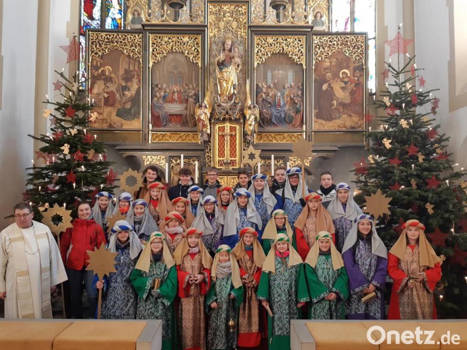 „Frieden! – Im Libanon und weltweit.“ Unter diesem Motto besuchen die Sternsinger die Menschen in ganz Deutschland. Nach einer kurzen Andacht am Donnerstag und der Erteilung des Segens schickte Stadtpfarrer Pater Hans Ring 32 Sternsinger mit ihren Begleitern auf den Weg in die Häuser Pleysteins. Der Stadtpfarrer freute sich über die große Beteiligung der Mädchen und Buben, die damit ihre Verbundenheit für die Kinder im Libanon und weltweit zeigen. Im Gebet segnete Stadtpfarrer Ring die Kreuze, den Weihrauch, die Kreide und die Myrrhe und bat um den Schutz der Kinder auf deren Weg durch die Straßen. Den ersten Besuch statteten die Sternsinger im Rathaus Bürgermeister Rainer Rewitzer ab. Dann brachten die Kinder den Segen C+M+B in die Pleysteiner Häuser und zeigten dies mit entsprechender Beschriftung über den Haustüren.