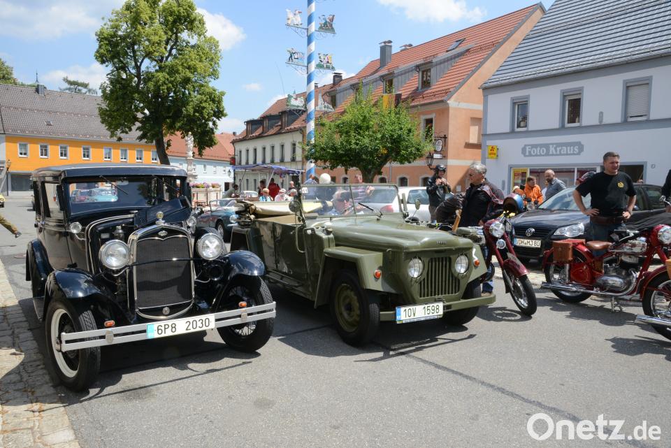 (bey) Die Oldtimerfreunde hatten ihre helle Freude an den prachtvollen Fahrzeugen vergangener Jahrzehnte. Am Samstagmittag legten die Teilnehmer der Rallye mit Ausgangspunkt Pfraumberg (Primda) nach den vorher angefahrenen Kontrollpunkten in Waidhaus und Waldthurn einen ausgiebigen Halt ein. Am Pleysteiner Marktplatz parkten die Fahrzeuge und Motorräder, alle natürlich auf Hochglanz poliert, in Doppelreihe.