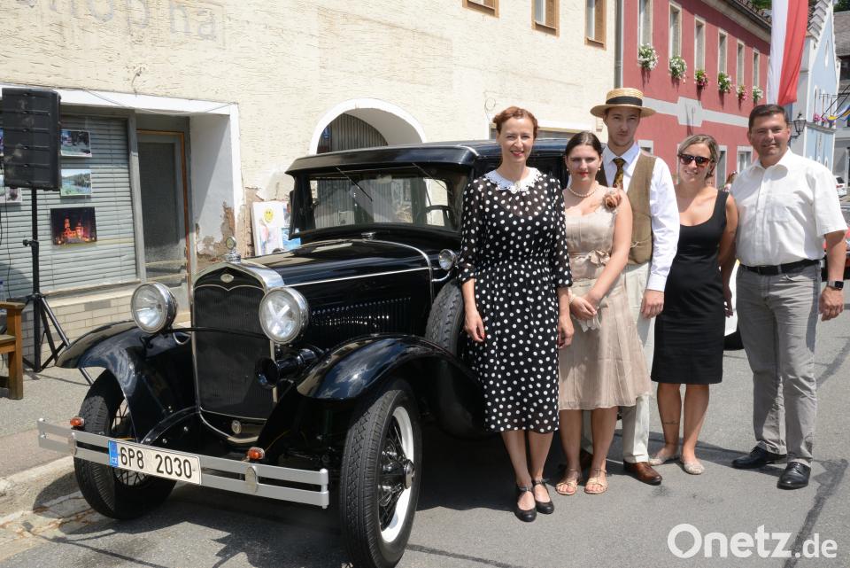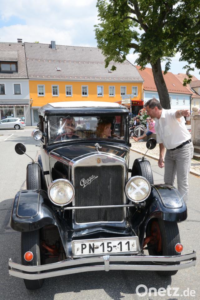 Währenddessen nützten die Zaungäste die Möglichkeit, die alten Fahrzeuge unter die Lupe zu nehmen. Da stand der Jaguar mit einem Riesenmotor und der extrem lang gezogenen Motorhaube neben den solide wirkenden Skodas und den Opel, Typ Wanderer. Jeeps der US-Armee mit dem unübersehbaren weißen Stern trugen, früher nicht mal denkbar, das Autokennzeichen des Nachbarlandes. „Manta, why not“ war auf dem Heck des Opels aus den siebziger Jahren zu lesen.Absoluter Hingucker waren aber der Ford A und der Praga Piccolo, beide Baujahr 1931, bestens erhalten und restauriert.