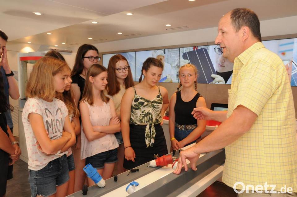 Helmut Zita und Wolf-Dieter Bieler brachten den Buben und Mädchen mit viel pädagogischem Geschick die vorhandene und auch „ausprobierbare“ Technik an den einzelnen Stationen nahe. Mit dabei waren auch Leistritz-Auszubildende, die ihren potentiellen Nachfolgern aus ihrem „Ausbildungsleben“ berichteten.
