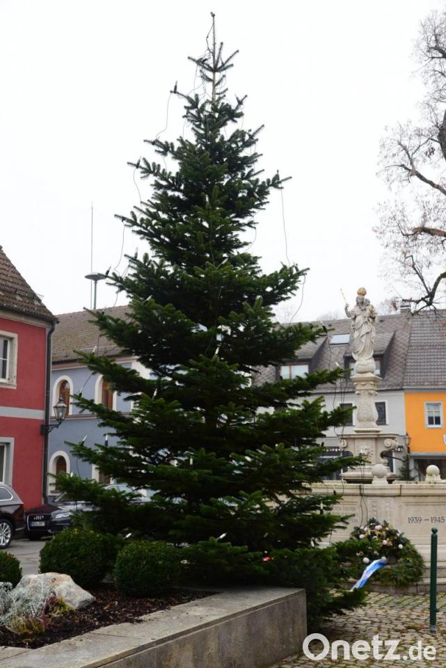 Noch recht einsam steht er da, der Christbaum auf dem Marktplatz. Aber bald wird das warme, gelbliche Licht der Kerzen die Menschen erfreuen. Heuer müssen sich die Pleysteiner damit abfinden, dass der Adventsmarkt am zweiten Adventssonntag ausfällt. Nach dem die mehrfachen Aufrufe der Stadt einen Weihnachtsbaum aus einem privaten Garten zu überlassen erfolglos waren, musste die Stadt einen anderen Weg gehen. Die sieben Meter hohe Nordmanntanne stammt aus einem privaten Verkauf von Christbäumen in Brünst. Bauhofmitarbeiter haben den Baum aufgestellt.