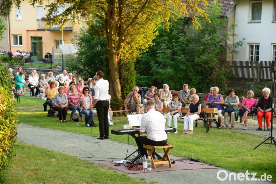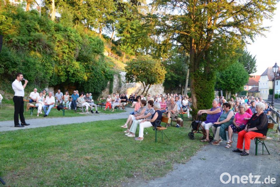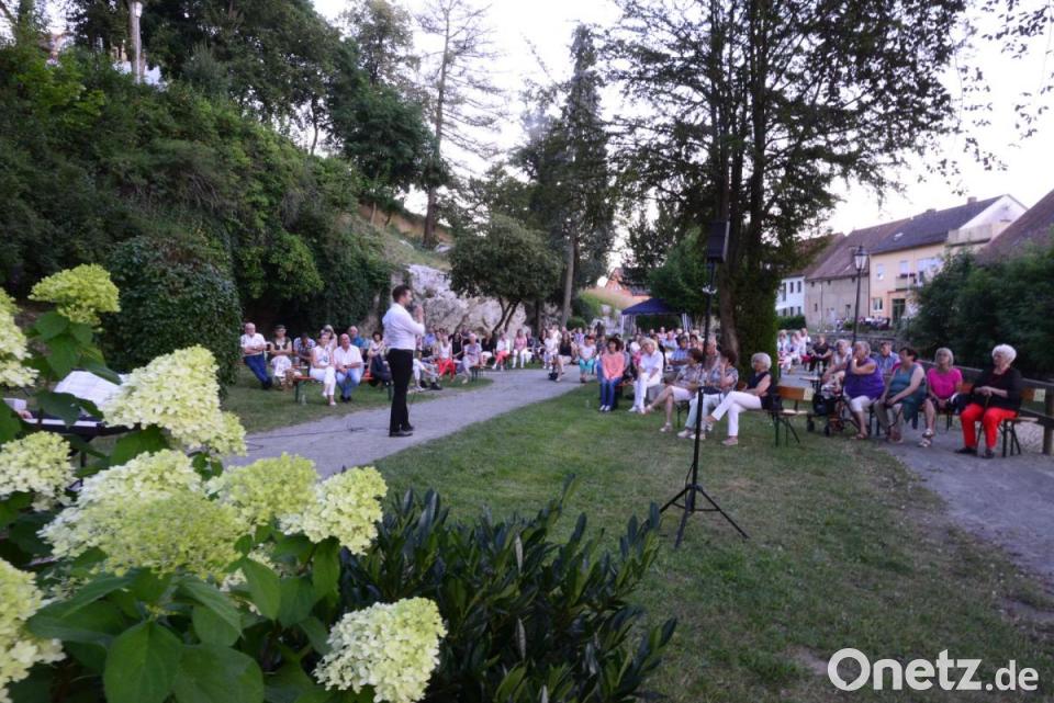 "Willkommen zum Sommerkonzert mit Abstand." Mit diesen Worten hieß Sänger Christoph Baierl die Gäste in der Kreuzberganlage willkommen. "Der Abend senkt sich" heißt es in der ersten Textzeile des Liedes "Die kleine Kneipe", bekannt geworden durch Peter Alexander. So genossen die Besucher anfangs noch die Abendsonne.