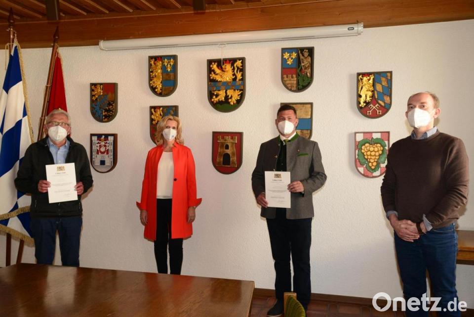 Die Kommunalen Dankurkunden des Freistaates Bayern "für verdienstvolles Wirken der kommunalen Selbstverwaltung" liegen schon seit dem Ende der kommunalen Wahlperiode im April 2020 für die zu ehrenden Kommunalpolitiker bereit. Im kleinsten Rahmen überreichte Andrea Lang nun die Dankurkunden an den ehemaligen Stadtrat Ludwig Putzer und Bürgermeister Rainer Rewitzer. Die Zweite Bürgermeisterin nannte politisches Engagement in der heutigen Zeit als "nicht mehr selbstverständlich und zugleich auch anstrengend und kräftezehrend". Deshalb verdiene eine solche langjährige ehramtliche Tätigkeit auch Anerkennung und Respekt.
