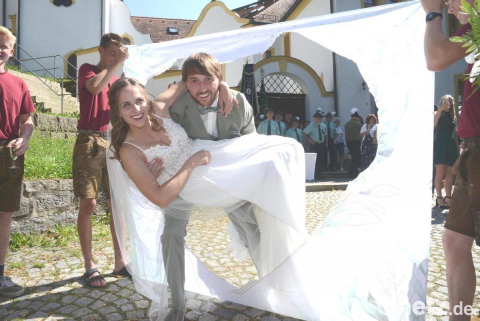 Anschließend fuhr das Brautpaar im Cabrio hinter dem Feuerwehrfahrzeug der Feuerwehr Neudorf in Richtung Friedrichsburg in Vohenstrauß, wo die Hochzeitsfeier statt fand. Standesamtlich getraut wurden David und Luisa Zeug im Rathaus Georgenberg am 16. August von Bürgermeisterin Marina Hirnet.