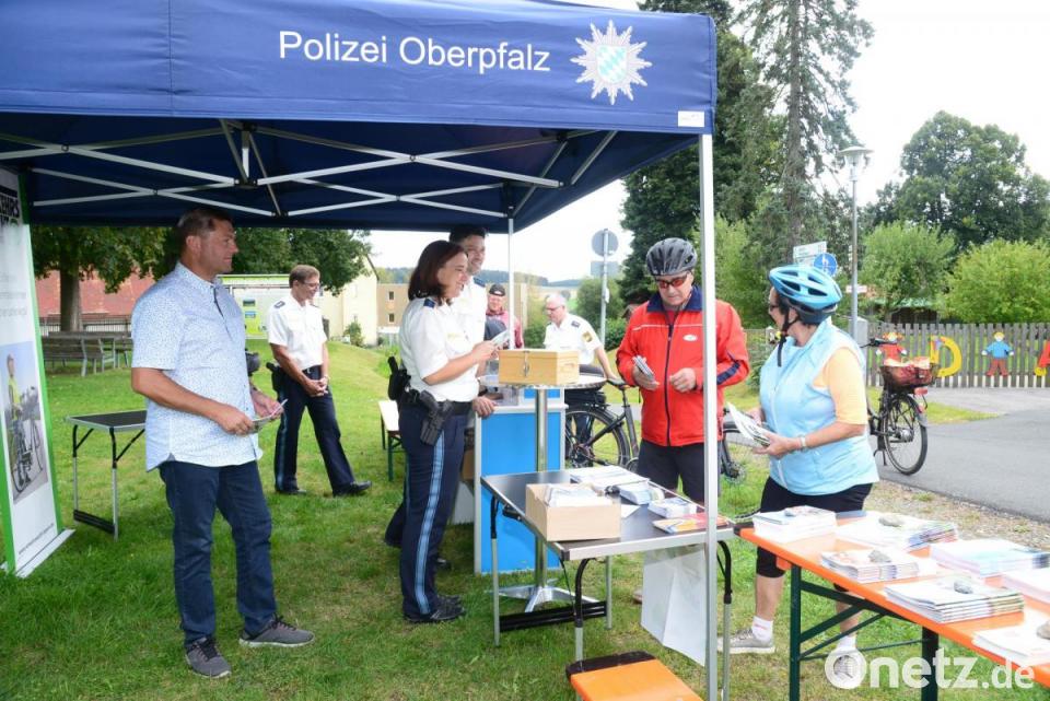 Polizeihauptkommissar Tobias Wirth, Sachbearbeiter Verkehr des Landkreises Neustadt/WN, hatte mit Polizeihauptkommissar Jakob Stahl (Vohenstrauß), Polizeihauptmeister Paul Zawal (Eschenbach) und Polizeihauptmeisterin Nicole Wettinger (Vohenstrauß) am Zimmerplatz - unmittelbar am "Bocklradweg" - einen Stand mit reichlich Infomaterial über alle gängigen Elektrokleinstfahrzeuge aufgebaut.