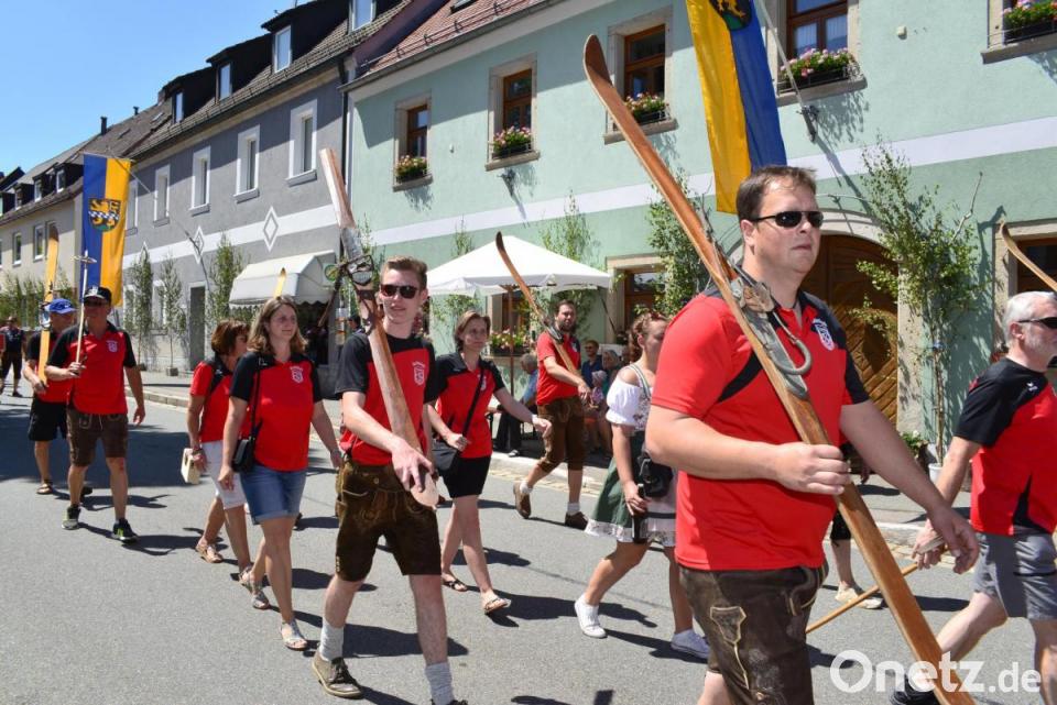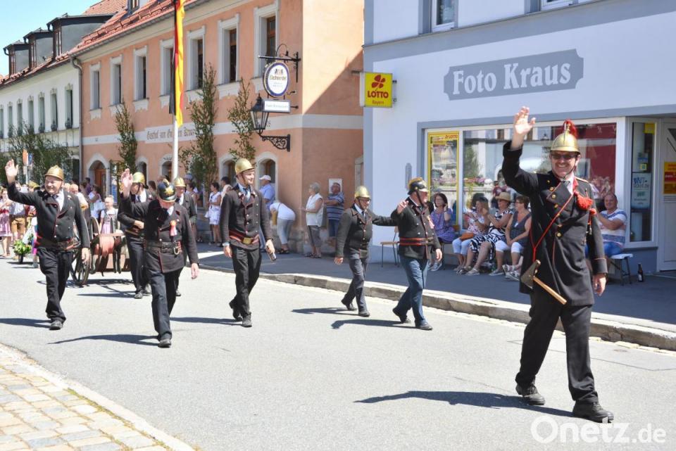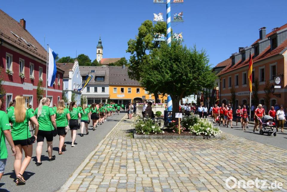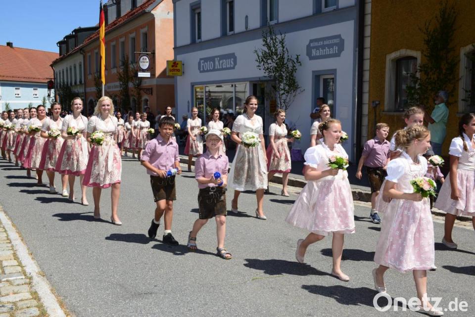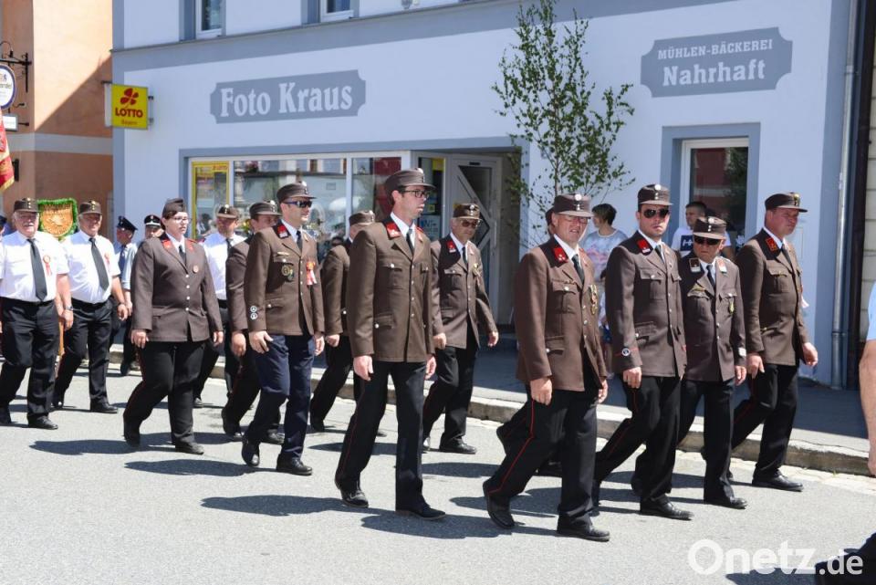 Über 100 Nummern umfasste die Festzugordnung, darunter sechs Musikkapellen, neun Festwagen, einen Oldtimer für die Ehrengäste, Abordnungen der Feuerwehren aus dem gesamten Landkreis, aus der Partnergemeinde Gamlitz, aus Bludenz/Vorarlberg, aus Bor und Roßhaupt und nicht zuletzt zahlreiche Vereine aus dem Bereich Sport und dem gesellschaftlichen Leben. Mit im Zug auch die Bürgermeister der benachbarten Kommunen und die Ausbildungskompanie 122 aus Weiden.