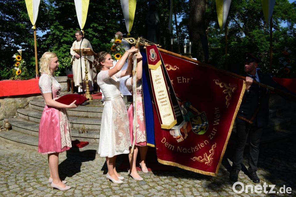 Zum Gottesdienstbeginn zog der Kirchenzug, angeführt von den Pleystoiner Bläsern, den Ehrengästen, darunter auch Landrat und Ehrenschirmherr Andreas Meier, Schirmherr Bürgermeister Rainer Rewitzer und Ehrenschirmherr Altbürgermeister Johann Walbrunn zum Kreuzberg. Pater Konrad Haußner und Stadtpfarrer Pater Hans Ring feierten mit den Ehrengästen, den Wehren und vielen Pleysteiner Bürgern den Gottesdienst. Die dreizehn Fahnen von Wehren und Vereinen, die Mitwirkung des Männergesangvereins 1895 Pleystein und der Pleystoiner Bläser gaben dem Gottesdienst einen festlichen Rahmen.