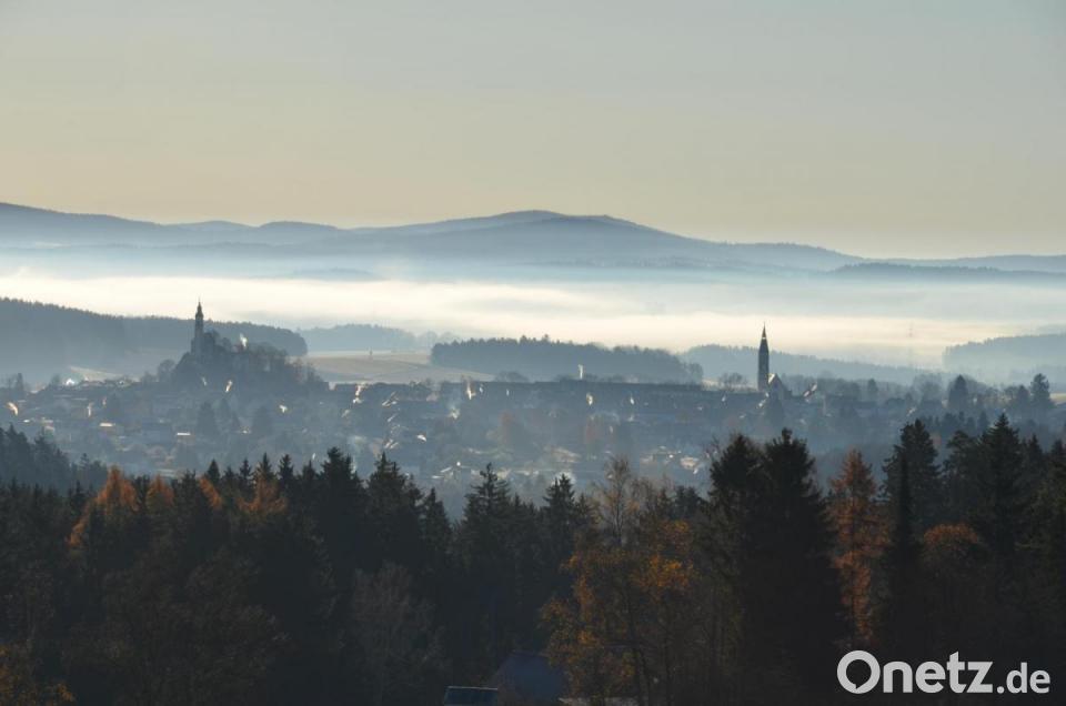 Wenn der erste Frost seine Muskeln spielen lässt, dann entstehen wunderschöne Ausblicke und stimmungsvolle Bilder. Fast als ob Väterchen Frost am Dienstagmorgen Friedensangebote in Form von Windstille schicken würde, nachdem er in der Nacht zuvor erstmals in diesem Jahr seine Krallen ausgefahren hat, tauchten die ersten Sonnenstrahlen aus dem Nebelgeschwader auf. Und während in den Niederungen noch ein Meer aus Nebel schäumt, zeigt sich die Rosenquarzstadt mit Kreuzberg und Stadtpfarrkirche schon im prächtigen Licht.