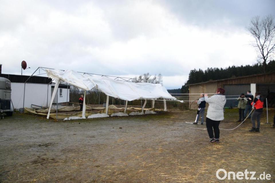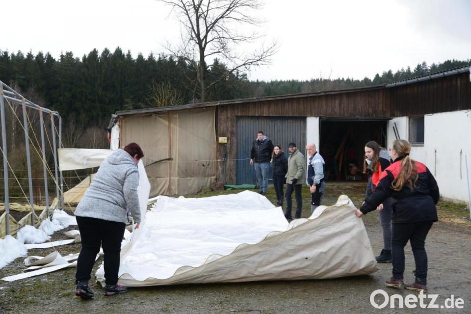 Weil aktuell nicht klar war, ob alle Reitschüler und Freunde zum Helfen kommen können, hat Patricia Beckmann einen Hilferuf auf Facebook gestartet. „In der Oberpfalz sind die Menschen besonders hilfsbereit und aufgeschlossen“, hat Inez Dreyer nach ihren Aussagen bereits festgestellt. Das Ergebnis sei „umwerfend“ gewesen – genau das, was die Helfer durch den Sturm vermeiden wollen. Es hätten sich so viele Freiwillige gemeldet, dass gar nicht alle Angebote angenommen werden konnten, berichtet Dreyer.