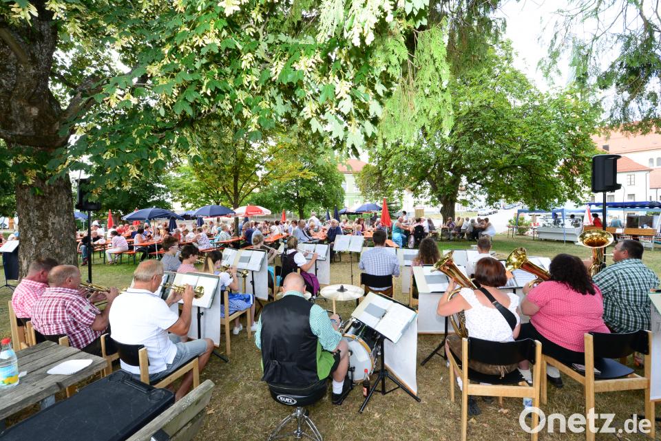 (bey) Am Zimmerplatz freute sich am Sonntagnachmittag ein großes Publikum auf „Böhmisch trifft Swing“. Im Schatten der Bäume ließ es sich gut sitzen und genießen. Anders als sonst bei dieser Veranstaltung oft üblich, regnete es diesmal nicht. Markus Schulz, Chef der „Pleystoiner Bläser“ machte die Besucher ausdrücklich darauf aufmerksam. Der Blick in die Chronik habe gezeigt, dass ein von oben her trockenes "Böhmisch trifft Swing“ bisher eher der Wunschtraum war.