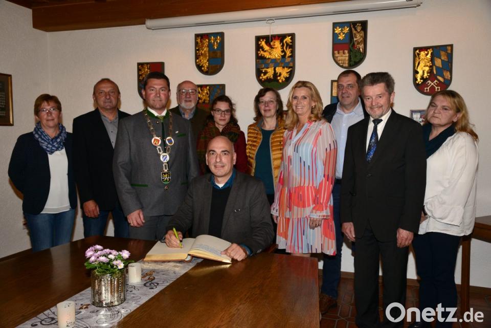 Nach einer Besprechung beim Stadtoberhaupt trafen sich zum Eintrag ins Goldene Buch zweite Bürgermeisterin Andrea Lang, die Fraktionsvorsitzenden Josef Windirsch, Claudia Poxleitner, Werner Rieß, die Stiftungsbeiräte MdL a.D. Georg Stahl und Altbürgermeister Johann Walbrunn sowie die Mitarbeiterinnen der Akademie, Christina Windirsch, Brigitte Frank und Katharina Bergmann zur Ehrungszeremonie im Sitzungssaal des Rathauses.
