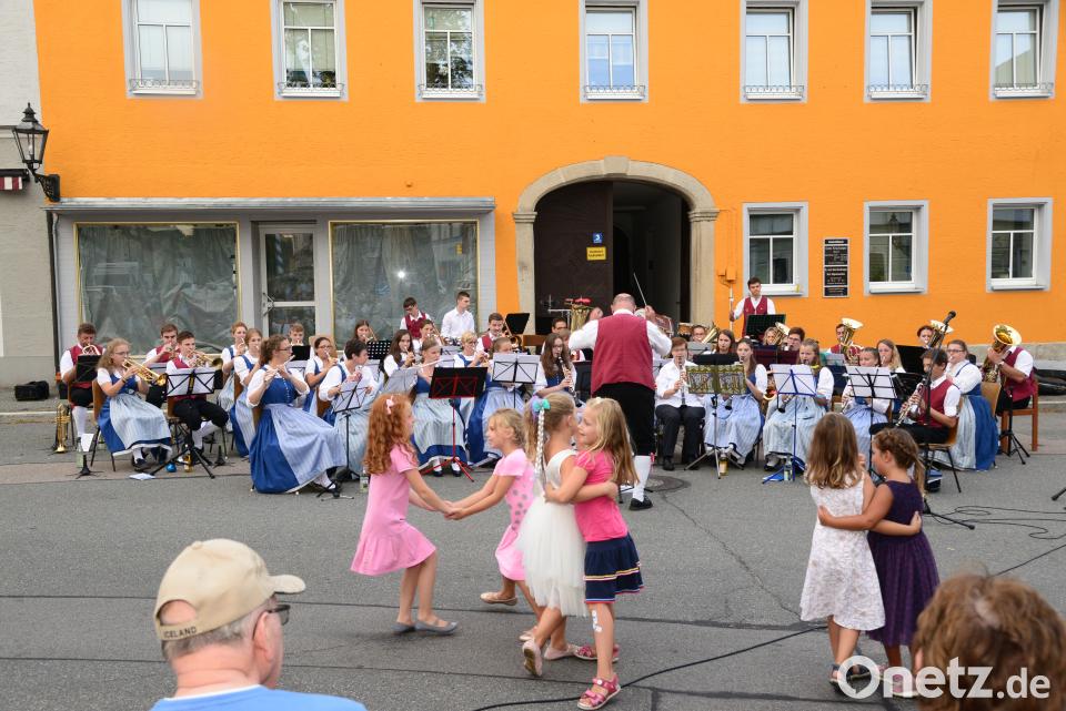 Nach dem klassischen Auftakt ließen dann die Melodien „Wiener Blut“, „Rosen aus dem Süden“, „An der schönen blauen Donau“, der „Kaiserwalzer“ vom unvergessenen Johann Strauß und ein Ausschnitt aus dem „Vogelhändler“ die Herzen der Freunde des Wiener Walzers höher schlagen, wenngleich auch kein Gast den Asphaltbelag des Marktplatz für einen schwungvollen Tanz nutzen wollte. Da hatte der Moderator auch die passende Antwort: „Eis essen ist wichtiger“.