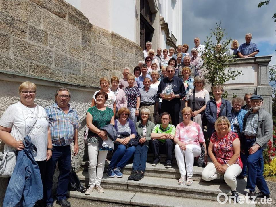 Höhepunkt der Fahrt war zweifelsfrei der Besuch des ehemaligen Pleysteiner Stadtpfarrers Pater Hans Ring an seiner neuen Wirkungsstätte, der Wallfahrtskirche Pöstlingsberg in Linz. Pater Hans Ring führte seine Gäste durch das Gotteshaus. Als Geschenk gab es für ihn einen Korb mit Oberpfälzer Köstlichkeiten.