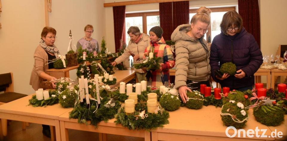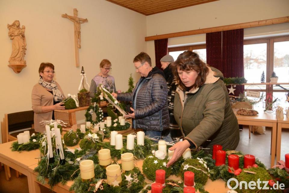 Adventskränze in den unterschiedlichsten Größen, mit roten und weißen Kerzen, Weihnachtsschmuck oder auch selbst gebackene Plätzchen und hauseigene Mischungen für Liköre, um sich in der kalten Jahreszeit etwas zu erwärmen, der Weihnachtsbasar des Katholischen Frauenbundes Pleystein hatte für jeden Besucher etwas im Angebot. An mehreren Abenden hatten die Frauen zusammengesessen, um die Adventskränze zu binden und die kleinen Geschenke attraktiv zu verpacken.