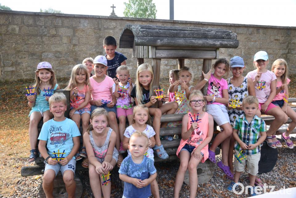 Bunte Bastelstäbchen zu einem kleine Zaun zusammenkleben, das ganz mit bunten Glitzersteinen verzieren und sich dann nur mit dem Vornamen darauf verewigen, um das ganze dann an die Türklinke des Kinderzimmers zu hängen – beim Kinderferienprogramm im Garten des Kindergarten St. Elisabeth waren rund 25 Kinder mit Begeisterung dabei, diese kleinen Kunstwerke zu schaffen. Jenny Käs und Maresa Völkl vom Elternbeirat hatten die Idee, damit von den Buben und Mädchen etwas handwerkliches Geschick zu fordern. Nach der Fertigstellung der Minizäune hieß es spielen und sich austoben auf dem Gelände des Kindergartens mit seinen Spielgeräten. Die Eltern konnten sich in dieser Zeit bei Gesprächen, Kaffee und Kuchen entspannen.