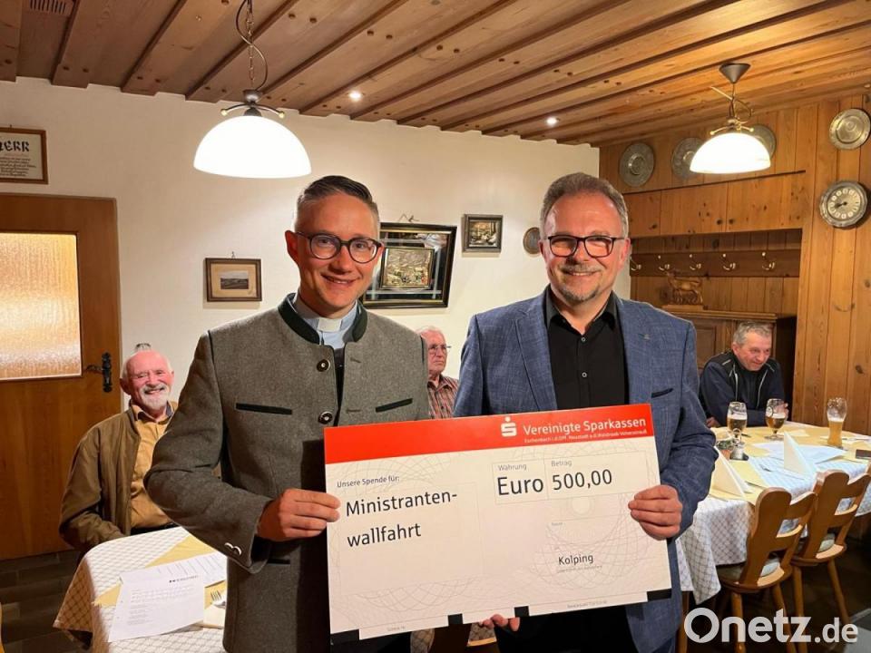 Kolpingvorsitzender Thomas Müllner überreichte im Rahmen der Kolpingbezirksversammlung Stadtpfarrer Adam Karolczak einen Scheck über 500 Euro. Dieser Betrag stammt aus den Erlösen der letztjährigen Altkleidersammlungen des Kolpingbezirks Fahrenberg. Stadtpfarrer Adam Karolczak sagte der Kolpingfamilie im Namen der Ministranten ein herzliches Dankeschön.