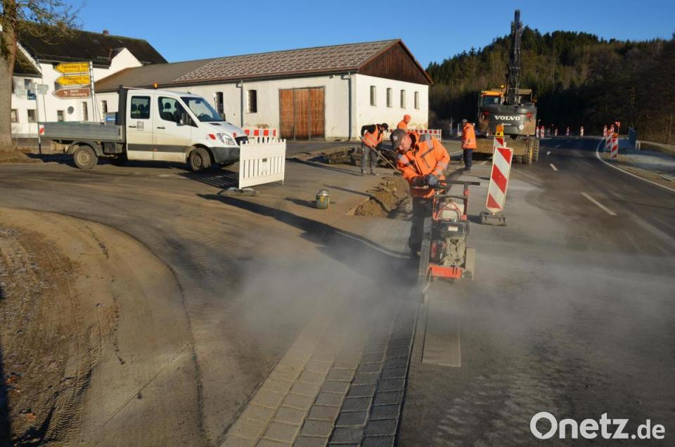 Der Druck aus der Bevölkerung war so groß, dass das Staatliche Bauamt Amberg-Sulzbach umgehend reagierte und nach einer Baubegehung das Versprechen gab, die als zu tief empfundene Wasserrinne an der Abzweigung von der Kreisstraße 32 in Richtung Oberbernrieth noch heuer zu ändern. Etliche Nutzer vor allem aus der Landwirtschaft, die mit ihren Geräten die Fuhrt langsam überqueren mussten, um nicht zu kippen, befürchteten, in Unfälle verwickelt zu werden, da die Verkehrsteilnehmer von der Kreisstraße her mit höherem Tempo unterwegs sind. Bauarbeiter der Firma Georg Huber (Inhaber Josef Rappl) rückten tatsächlich am Dienstagfrüh mit schwerem Gerät an und sägten die quadratischen Granitpflastersteine heraus. Jetzt soll die Rinne nach eigenem Bekunden der Straßenbauer asphaltiert werden. Eine Vollsperrung soll es nicht geben. Bereits am Freitag wird die Feinschicht aufgezogen.