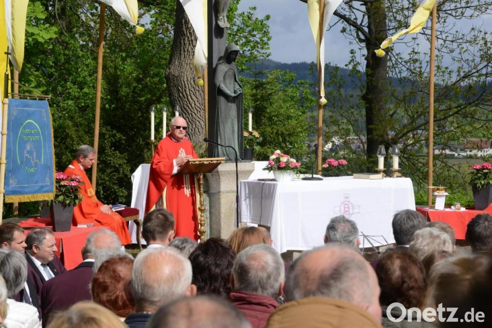 Pater Thomas Mühlberger hieß die Besucher des Festgottesdienstes auf dem Kreuzbergplateau willkommen. Er zeigte seine Freude über die gut angenommene wunderschöne Lichterprozession am Abend zuvor, aber auch über das trockene Wetter zum Festgottesdienst im Freien – der besondere Charme des Festes. Sein Willkommensgruß galt Pfarrer Konrad Haußner, der, wie auch Pater Thomas Mühlberger, der Ordensgemeinschaft der Oblaten des heiligen Franz von Sales angehört, die seit fast 60 Jahren auf dem Pleysteiner Kreuzberg im Glauben ist. Pater Konrad Haußner ist mit dem Kloster auf dem Kreuzberg eng verbunden, denn er gehörte dem ersten Noviziatkurs an, geleitet von Pater Karl Reber. Haußner lebt jetzt im Zentrum Wiens nahe dem Stephansdom. Er ist mittlerweile 82 Jahre alt.