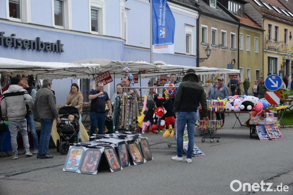 Den Festgottesdienst umrahmten der Männergesangverein Pleystein und die Stadtkapelle. Die wieder zahlreichen Händler gaben sich alle Mühe, ihre Artikel lockend ausgestellt, den Besuchern anzubieten. Da fand sich natürlich wieder viel Spielzeug, Delikatessen oder mediterrane Feinkost und viel Süßes, bei dem mancher Besucher sofort einen Stopp einlegte. Wer nur noch kurz vor dem Mittagessen ein leichtes Hungergefühl verspürte, konnte mit einer Rosswurst seinen Hunger stillen, aber auch Bratwürste kaufen.