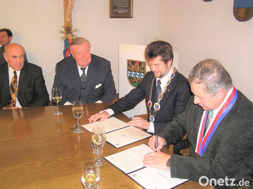 Am 10. November 2003 wurde im tschechischen Bor der erste Partnerschaftsvertrag unterzeichnet. Der zweite Teil der denkwürdigen Dokumentation dieser grenzüberschreitenden Zusammenarbeit ging zwei Wochen später, am 25. November im geschmückten Rathaussaal über die Bühne. Zahlreiche Ehrengäste waren damals gekommen. Die Gemeinde aus dem früheren Egerland vertraten Bürgermeister Frantisek Podlipsky, seine Stellvertreterin Jaroslava Sachimova, Dekan Vladimir Born, die Stadträte Miroslav Bultas und Petr Myslivec sowie die Dolmetscherin Bozena Podlipska.