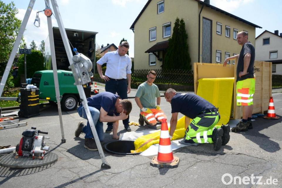 Dabei habe sich ergeben, dass der Betonrohrkanal weitestgehend in Ordnung, die Rohrverbindungen aber undicht seien. Bei dem Kanal in der Anton-Wurzer-Straße mit einer Länge von 170 Metern müsse von 150 undichten Muffen ausgegangen werden, sagt Wolfrum. Das Renovationsverfahren komme hier deshalb in idealer Weise zum Einsatz. Das bedeutet, dass eine Glasfaserharzmatrix in Form eines Schlauchsystems in den Kanal eingezogen wird. Das Material ist laut Wolfrum auf Dauer beständig. Der eingezogene Schlauch wird mit Druckluft aufgestellt und mit Licht und UV-Lampen ausgehärtet. Die Hausauschlüsse werden anschließend aufgefräst und ebenfalls mit Harzmaterial an den Kanal angebunden. Damit existiert im alten Kanal ein neues Kanalrohr mit einer Lebenszeit von 50 Jahren.