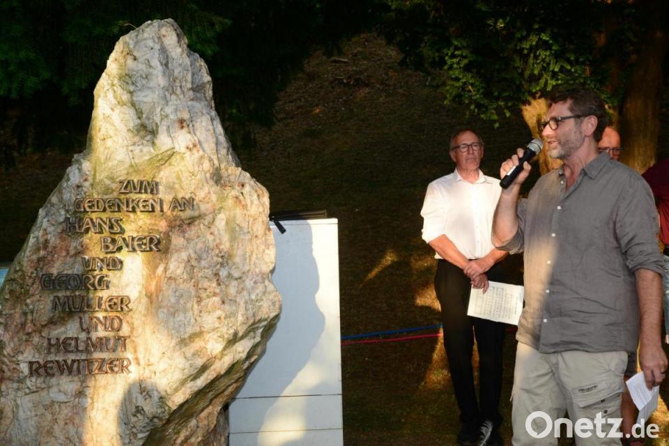 Bürgermeister Rainer Rewitzer gedachte am Gedenkstein in der Kreuzberganlage seines Cousins. Bernhard Voit würdigte als Mitgründer des Kulturkreises Pleystein den ehemaligen Vorsitzenden.