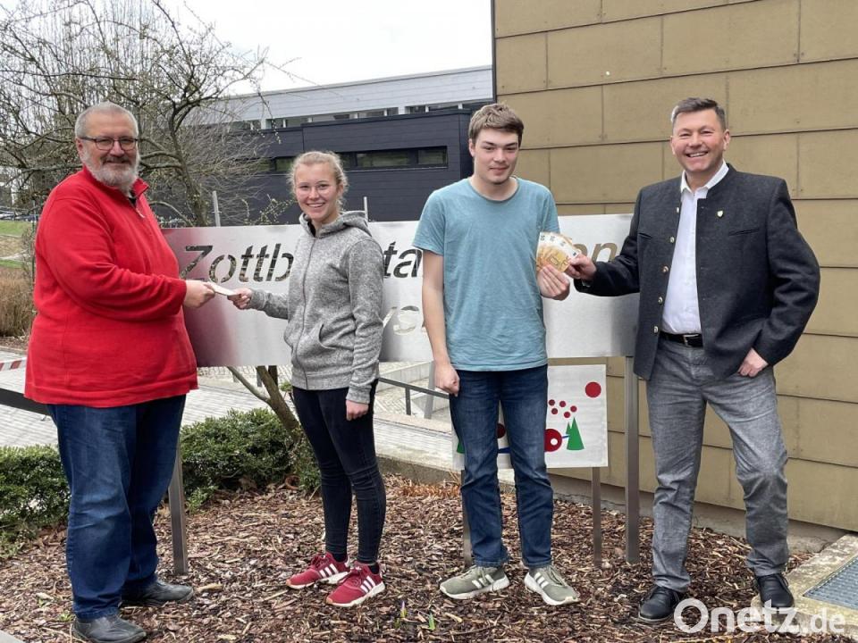 Mitte März setzten die Zottbachtal-Schulen Pleystein mit dem Peace-Zeichen unter Beteiligung aller Schüler ein Zeichen für den Frieden. Zugleich riefen sie eine Spendenaktion zur Unterstützung der Flüchtlinge aus der Ukraine ins Leben. Jetzt übergaben Milena Wittmann und Ludwig Grötsch stellvertretend für die gesamte Schulfamilie über Rektor Gerhard Steiner an Bürgermeister Rainer Rewitzer die gesammelten 350 Euro. Der Rathauschef wird das Geld geflüchteten Ukrainern in Pleystein und der Umgebung zukommen lassen.
