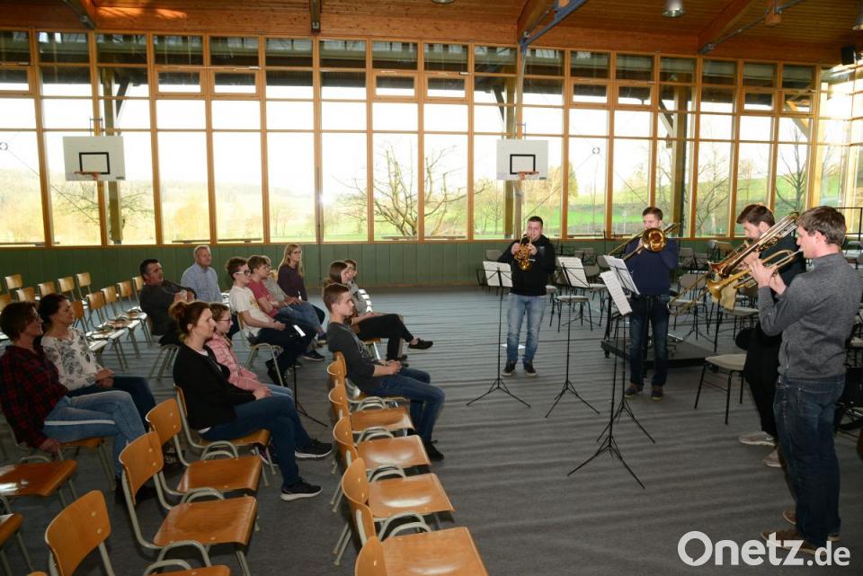 Bürgermeister Rainer Rewitzer dankte den vier Solisten für die Bereitschaft, die einheimischen Musiker mit den Feinheiten der Blechblasinstrumente vertraut zu machen.