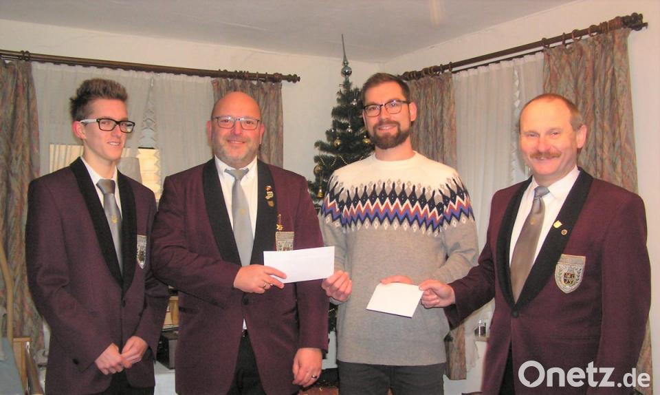 Nach dem Festgottesdienst überreichten Dirigent Alexander Völkl und Tobias Schulz für den Kirchenchor 500 Euro an Ronny Tölzer aus Vohenstrauß, der früher viele Jahre in Pleystein lebte und hier als Ministrant in der Kreuzbergkirche und später als Fußballer des TSV aktiv war. Das Geld stammte aus dem Konzert im Oktober in der Stadtpfarrkirche und wurde aus der Chorkasse auf den halben Tausender aufgestockt. Für den Männergesangverein übergab Vorsitzender Karl Herrmann 300 Euro aus der Vereinskasse an den dreifachen Familienvater. Ronny Tölzer bedankte sich bei den Vertretern der Sponsorenorganisationen „für die ansehnlichen Zuwendungen“. Er berichtete von dem Leidensweg seiner schwer erkrankten Ehefrau Renate. „Wir sind überaus positiv überrascht, in welch erstaunlich großem Umfang wir von vielen Seiten eine tolle Unterstützung erfahren dürfen, auch aus unserem früheren Wohnort Pleystein. Mit den erhaltenen finanziellen Mitteln bezahlen wir Medikamente und Behandlungsmethoden, die von den Krankenkassen nicht oder nur zum Teil übernommen werden“.