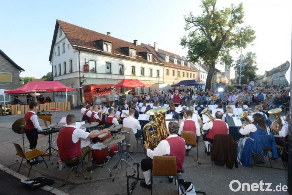 Pünktlich um 19 Uhr ließ das Vereinsorchester Waidhaus unter Leitung von Hermann Mack den Deutschmeister Regimentsmarsch vor dem Pleysteiner Rathaus erklingen. Das war der klangvolle Auftakt zur diesjährigen Serenade und somit zur Einleitung des Festwochenendes mit Multi-Kult-Nacht und Bürgerfest. Bürgermeister Rainer Rewitzer freute sich in seinem Willkommensgruß über die vielen Besucher. Unter den Gästen waren auch der ehemalige Bürgermeister von Pleysteins Patenstadt Gamlitz, Karl Grasmuck mit seiner Gattin Maria. Durch das Programm der Serenade führte Verena Hoch. Vom „Weißen Rössl“ bis zu „Les Miserables“ war ein abwechslungsreiches Programm geboten. Auch die Titelmelodien aus „Die Lindenstraße“, der „Schwarzwaldklinik“ und „Wetten, dass“ erklangen.